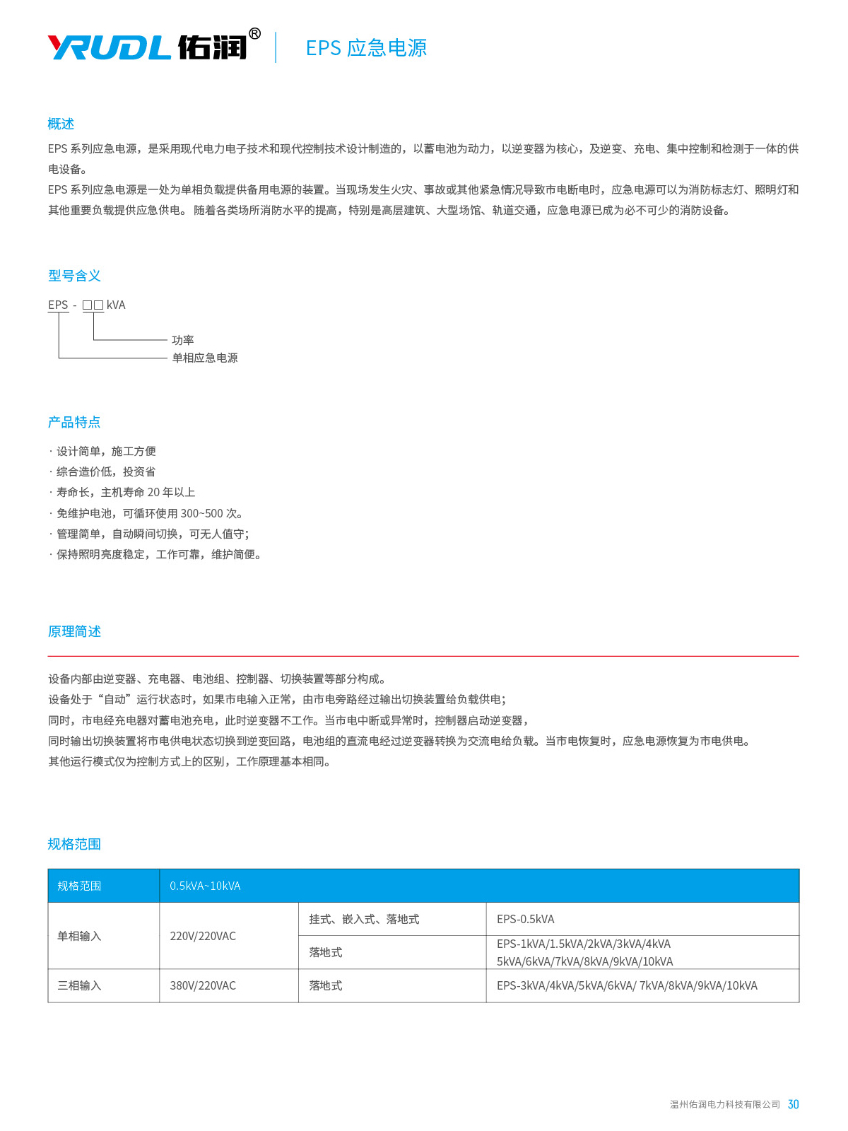 EPS 系列应急电源,是采用现代电力电子技术和现代控制技术设计制造的,以蓄电池为动力,以逆变器为核心,及逆变、充电、集中控制和检测于一体的供